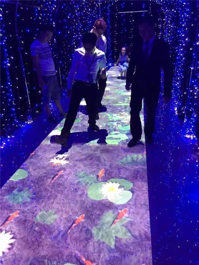 展覽會(huì)的主要目的是讓參觀者對(duì)商家的產(chǎn)品有所了解,產(chǎn)生好感。那么地面互動(dòng)投影的運(yùn)用則恰到好處,它可以吸引參觀者,讓他們停留、駐足,從而會(huì)對(duì)商鋪有更深的了解。